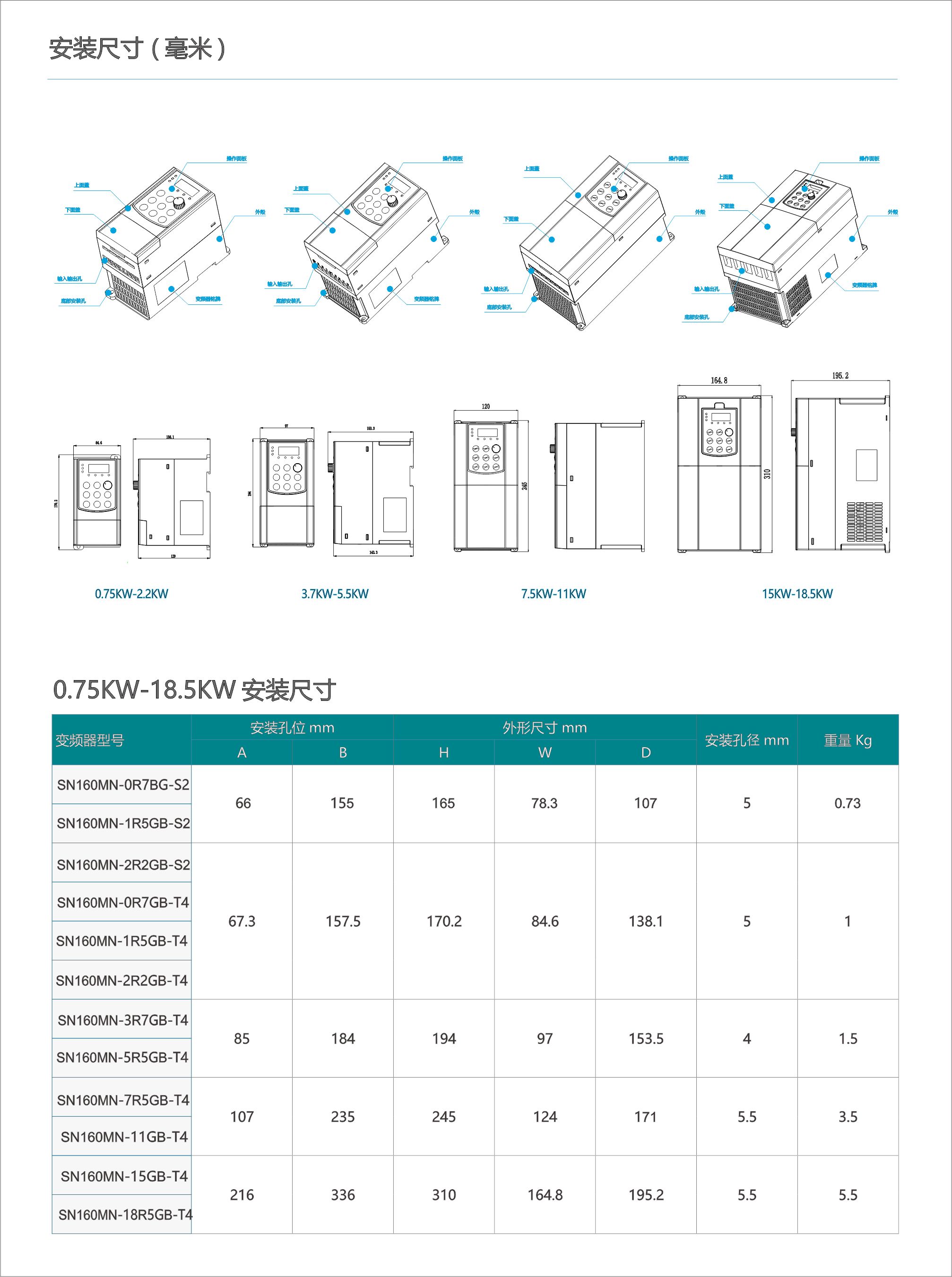 SN160MN-迷你型(0.75KW~1.5KW)-220V系列变频器使用说明书